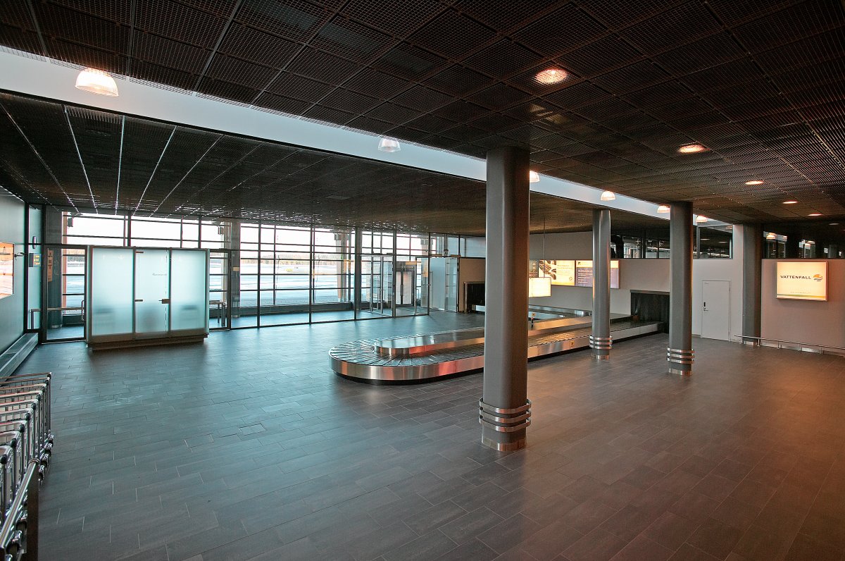 Future needs for conversion flexibility were prepared for by means of a clear-cut floor plan. The spaces for arriving and departing passengers are at the ends of the building, clearly separate from each other. The baggage handling space in the middle area can be later converted into passenger space.