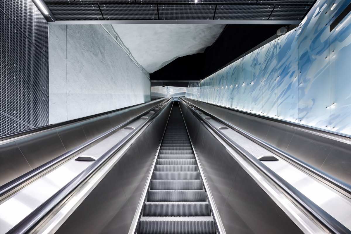 Traffic on the Ruoholahti–Matinkylä line started in November 2017. The stations on the line are functionally similar. On the platform level they are parallel to the track, 90 metres long, and at each end there are escalators and lifts for passengers to ascend to ground level. However, the objective was to achieve idiosyncratic stations that are distinctive from each other. That is why each station was given a specific, characteristic theme at the beginning of the design phase.
