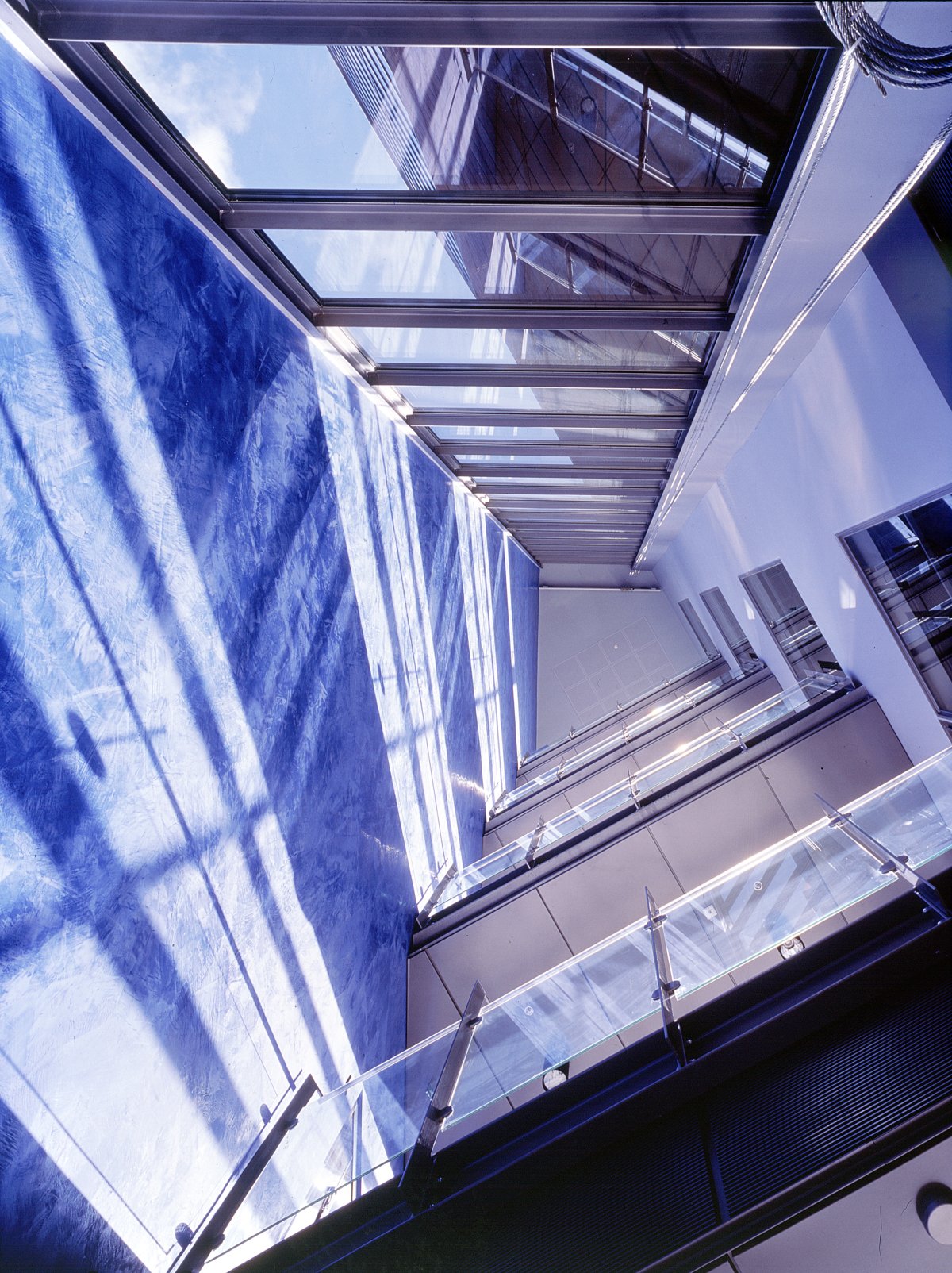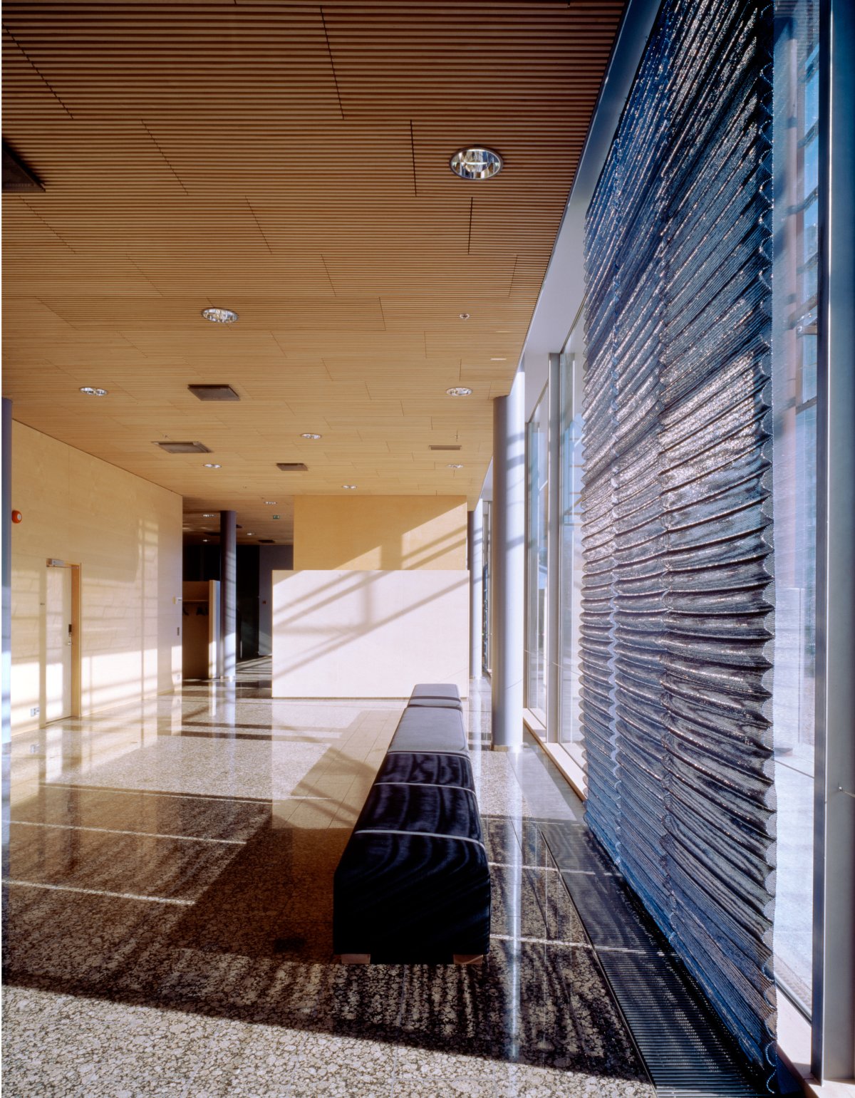 In relation to the development programme of the Rautaruukki company, the project involved an innovative use of steel from frame to details. Structural details used here were published as general design guidelines. A demanding spot of collaboration between the architect and the structural designer was the load-bearing structure of the atrium, whose lightness was achieved by means of a constructive form as well as by maximising tension units and minimising pressure units. The office area solution is based on the open building