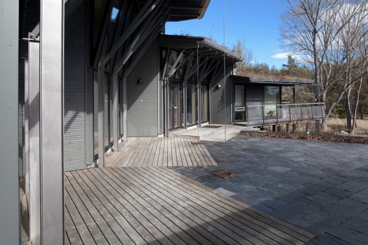 Villa Marga is located on the site of an old, ruined fisherman’s croft in the Ekenäs archipelago. The buildings and an old fruit garden are in the middle of the site, at its highest point. The ground descends about ten metres on the long way to a shoreline sauna and the sea. The villa has open views of the sea, which gain additional charm from the numerous animals that live in the nearby forest and visit the site.