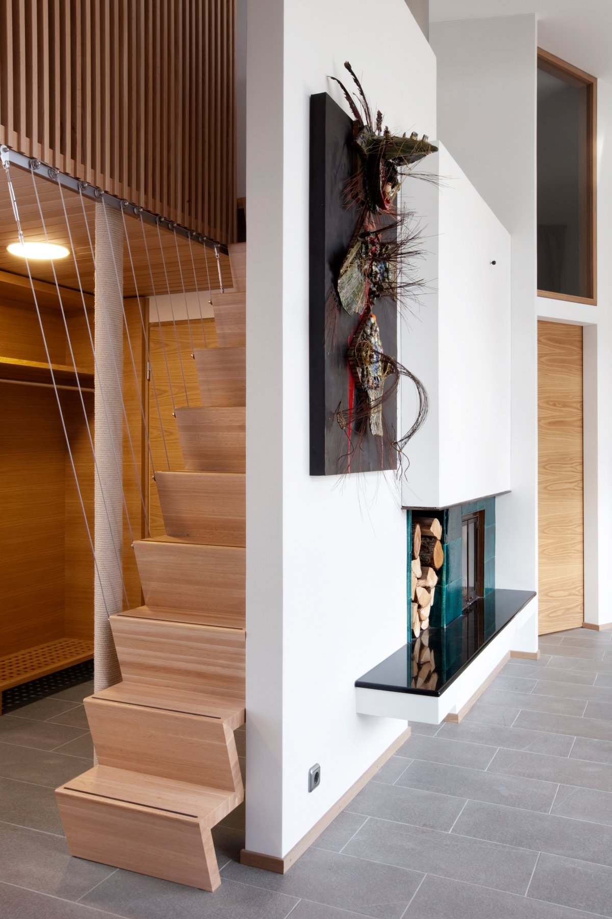A log cottage built in the late 1930s and extended several times was demolished to give way to the new villa. The shoreline sauna was renovated. A large storehouse and a cowshed were preserved; they are used in the family’s hobbies of small-scale organic cultivation and independent forestry. An old underground store beside the main building is used actively.
