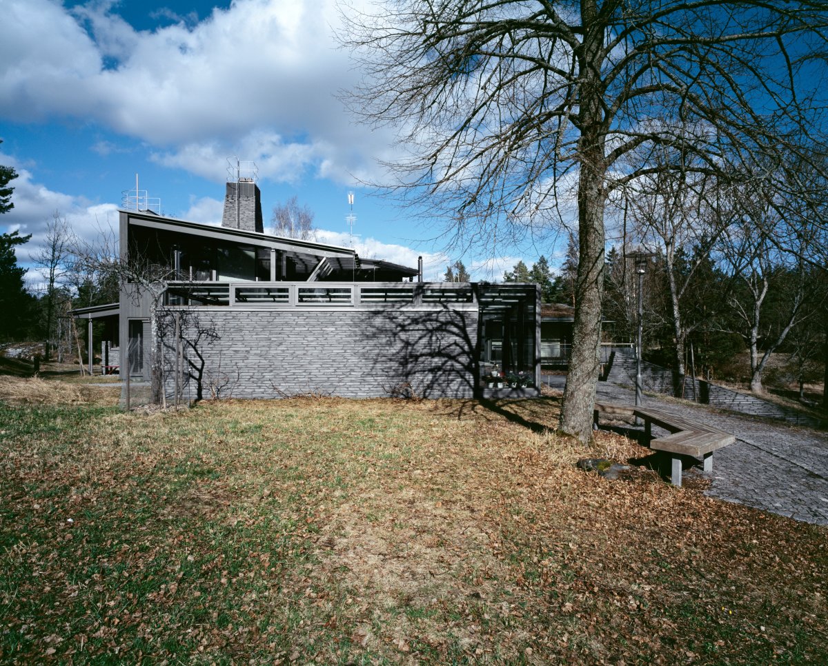 The structures are of wood and steel, and the principal facade material is grey-stained weatherboarding. The shade of grey was specially produced to harmonise with the colours of the archipelago landscape. The turf roof with sedum and wildflowers merges with the surroundings.