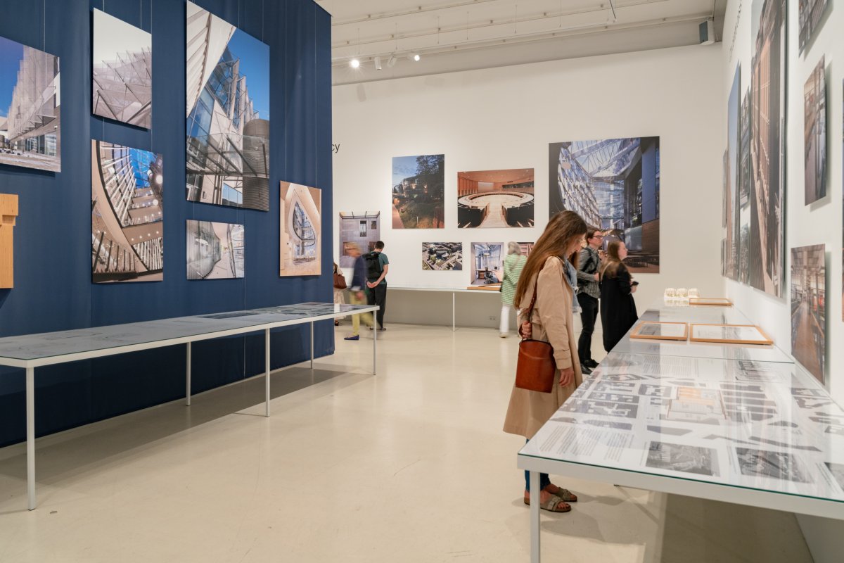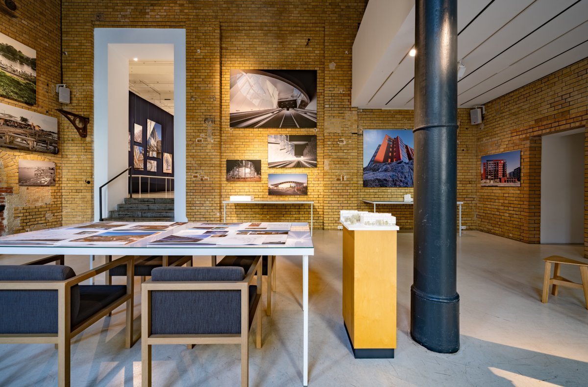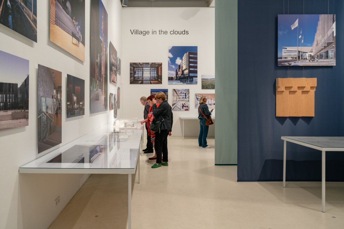 The exhibition itself is spread across both exhibition rooms at Aedes. One room presents the three major key projects in Kamppi, Kalasatama and Sello with the help of numerous photographs, plans and models. The second room showcases other projects of various types, from residential buildings to a metro station, illustrating how Helin & Co has been creating architecture for the people of Helsinki since its foundation. Cinematic drone footage provides insights into how the projects are embedded in their respective environments.